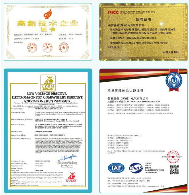 The American-owned company MeiZiSenMei (Suzhou) Electric Co., Ltd. has consolidated the achievements of a team of experts in this field, who have explored for many years. By introducing and absorbing advanced international technologies, the company has further mastered numerous cutting-edge industry technologies and successfully developed a series of high-tech dehumidification equipment. The company has obtained ISO quality management system certification, and its products have also earned China's mandatory national product quality certification (3C) and EU CE certification.