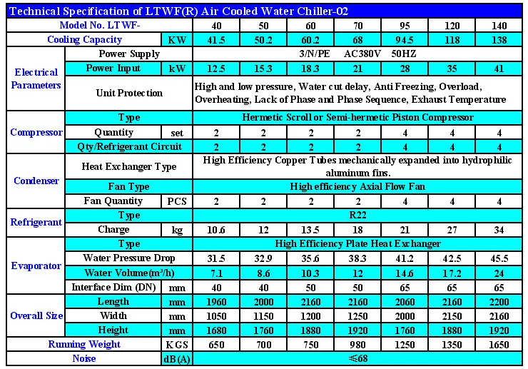 Air Cooled Water Chiller Model Specification: