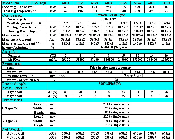 ** Ambient temperature DB 7 oC, WB 6 oC; condenser water in/out temperature 40/45 oC;