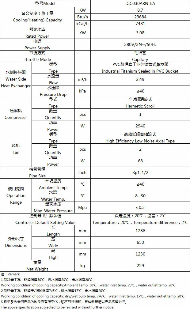 Assembled with world wide famous scroll compressor, which provides,reliable.high efficiency and low noise operation, Industrial titanium evaporator,high capability in anticorrosion.can be used to cool seawater,and other corrosive liquid.