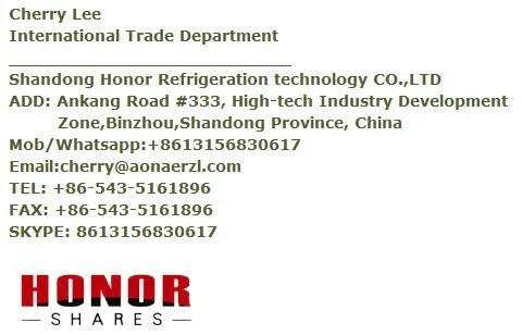 Shandong Honor Refrigeration Technology Co., Ltd., located in Binzhou, Shandong, was first established in 2005 and built new headquarter base in 2011 with land area of 150000 square meters. Honor is specialized in the development and manufacture of refrigeration equipments. So far, we have two subsidiaries - Shandong Huayu Machinery Equipment Co., Ltd. and Onestop Engineering Co., Ltd.